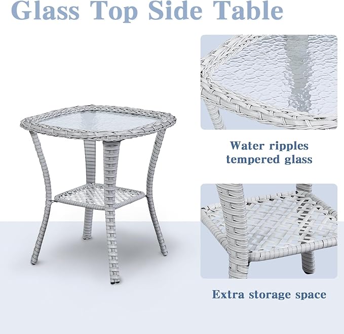 - 2.Sturdy Outdoor Heavy-duty Chairs: Each chair weighs 35 pounds and can provide a load capacity of 350 pounds. Sturdy powder-coated rustproof steel frame provides strong support. This 3-piece bistro set is perfect for any size patio space. Perfect for chat under the stars or a casual date with friends. This outdoor wicker furniture set will serve you well for years to come.
