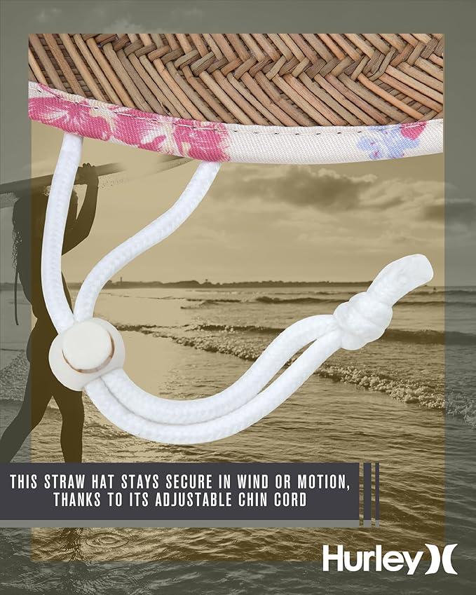 - DESIGN THAT INSPIRES CONFIDENCE: The Hurley Women's Straw Hat combines the perfect balance of beach-chic and sun protection. Its medium brim delivers a flattering silhouette while shielding your face from harmful UV rays. Whether you’re lounging at the shore or strolling through a sun-soaked park, this hat will keep you looking effortlessly stylish. Crafted from real straw, it adds that natural, laid-back vibe that sun hats for women should offer