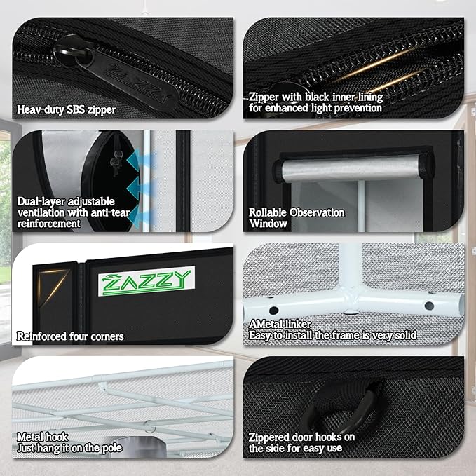 - Tool-Free Fast Installation--- Our grow tents are easy and fast to install without tools even if you've never done something like this before. The package includes the user-friendly and professional instruction well for easy set up.