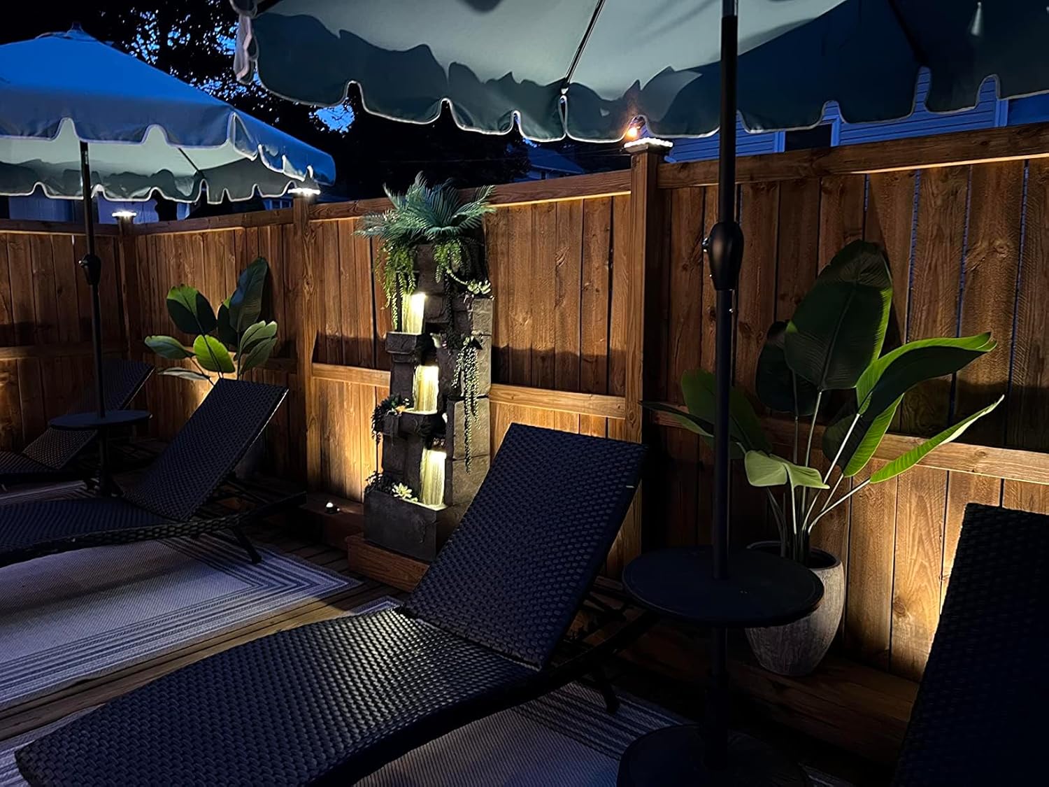 - GARDEN DECOR & LIGHT: Modern Design Mixed with Natural Elements, the water fountain outdoor with Warm Glow LED Lights is the Perfect for Your Outdoor Decor and Fits Put on Your Porch, Backyard, Garden or Lawn.