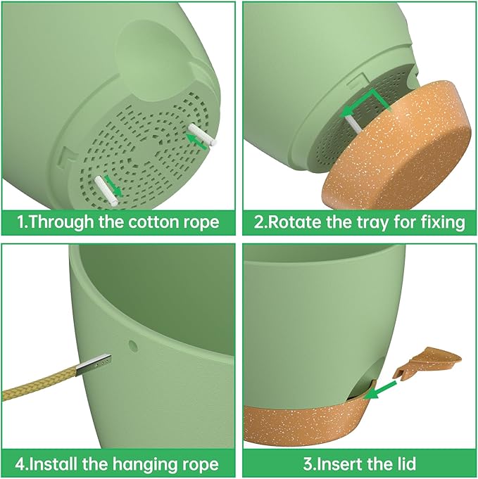 - Self Watering Hanging Planters: The hanging planters have an absorbent cotton rope and a removable reservoir. It ensures that your plants are not soaked in water and prevents root rot. The large capacity saucer provides enough water for your plants and the plant pots will keep them growing normally for 7-10 days, so you don't have to worry about your plants drying out even if you are travelling far away;