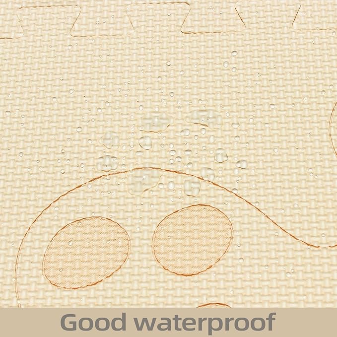 qqpp EVA 18 Tiles Baby Play Mat for Playing, Interlocking Foam Floor Mats for Tummy Time & Crawling, Puzzle Flooring Tiles with Animals Laser Pattern for Kids. Beige. QL-11(J) b18N