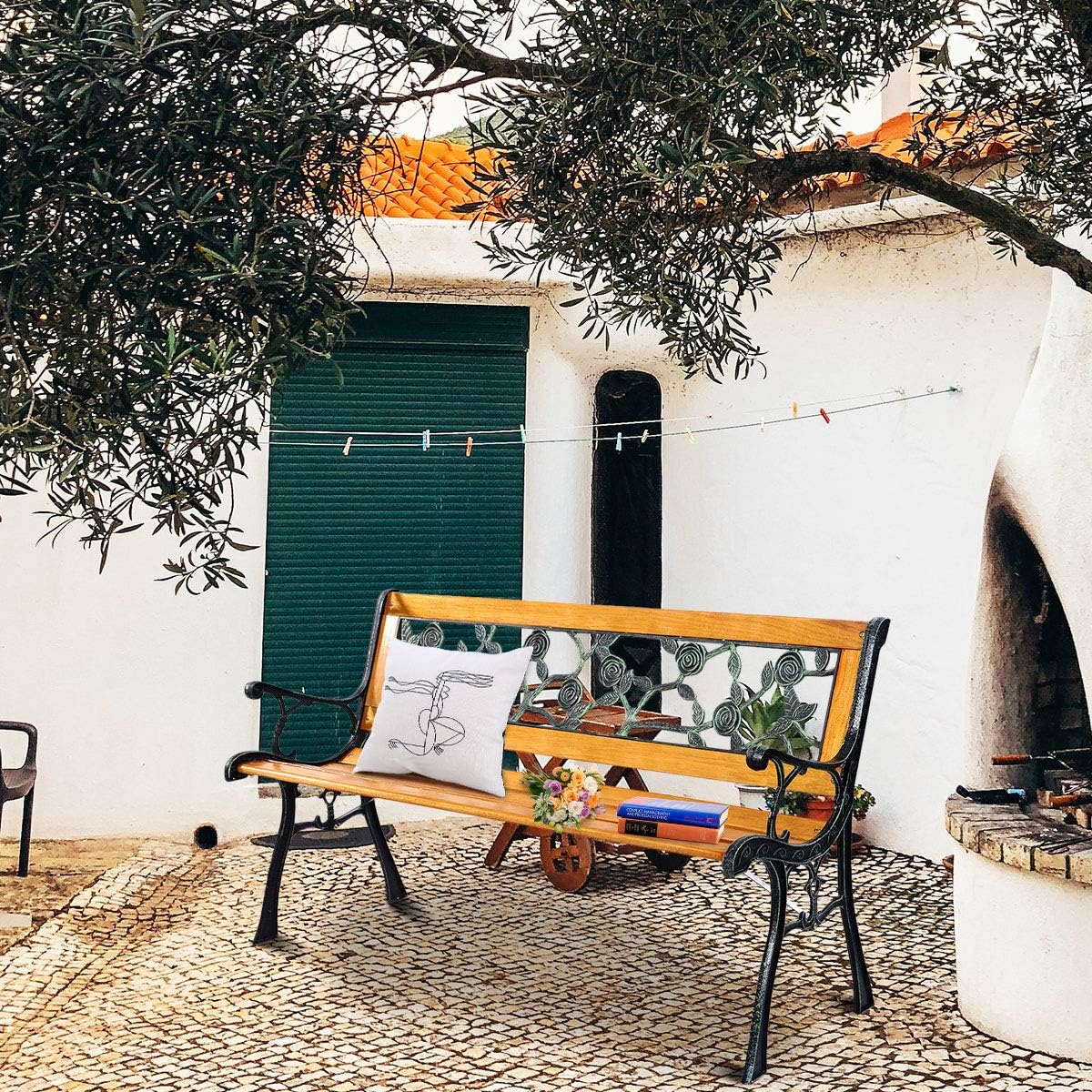 - ⛅【Sturdy & Durable Material】 The outdoor patio bench are made of well painted cast iron structure, solid wood seat and backrest frame, making them strong and durable, with a strong bearing capacity of 470 lbs.