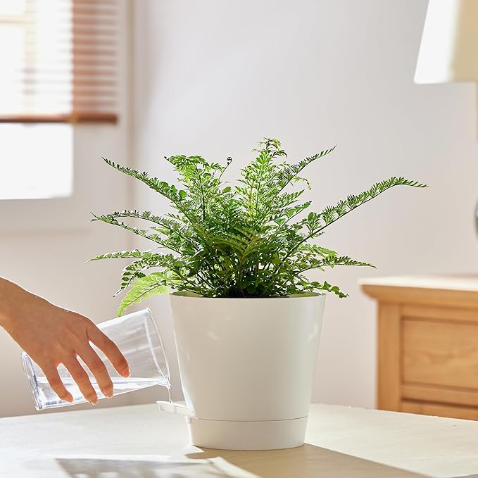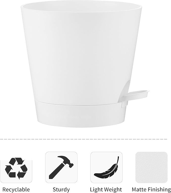 - 【Innovative Self Watering Design】- Our flower pots are equipped with detachable deep trays that can store a large amount of water, enough to supply plants with water for up to 14 days, keeping your plants well fed and hydrated. You don't have to worry about your plants drying up when you are away on a business trip or traveling.