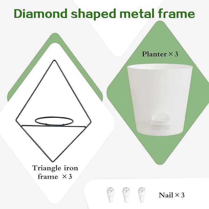 3 Sets of Wall Planters for Indoor Plants, Hanging Wall Planter with Black Metal Holder, Geometric Self Watering Wall Flower Pots, Wall Mounted Succulent Planter, 5" White Plant Pot