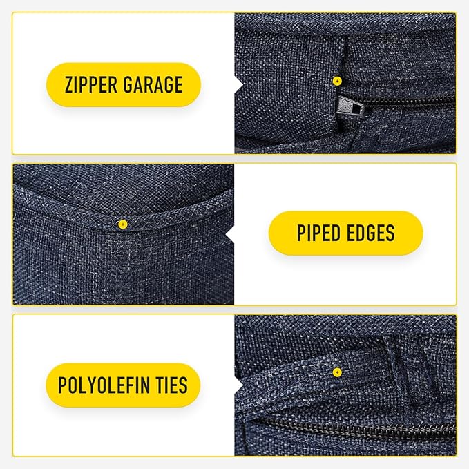 - 【Invisible Zipper Garage | Removable Cover with Ties】Zippers lock to keep a tight closure, stored in protective garages to prevent scratching your patio furniture when closed and offer a seamless look. Removable cover with non slip ties, customizable fit to keep your cushion where you want it.