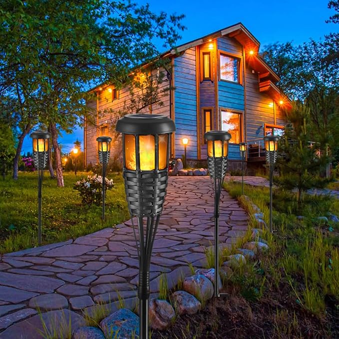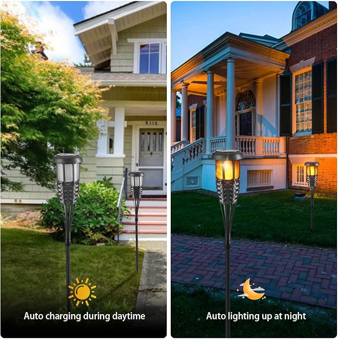 - Realistic Flame: The solar torch light with 36 flickering LEDs emit a flame like light, providing a wonderful atmosphere