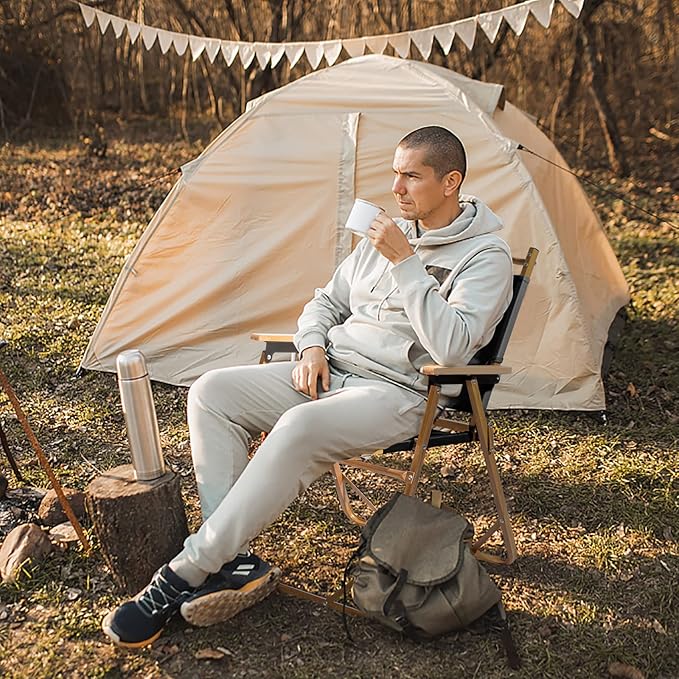 - 【COMFORTABLE DESIGN】Ergonomic back and armrest is designed to provide you comfort and relax even if you sit in the camping chair for a long time. Large seat area provide comfort, which is large enough for tall and heavy people