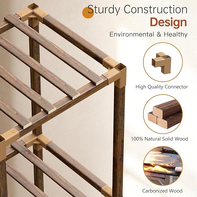 - 🌲 Stable Durable Tall Plant Stand Lasts for Decades. What are the key elements that make our large plant stand lasts for decades? High quality real natural wood combines with high standard durable plastic joints, these make this outdoor plant stand bears many plants for decades without any deforming or shaking. This ladder plant stand provides the ability to manage all heavy plants at the same time. Also, this plant stand for large plants is available for outdoor in dry and sunny areas.