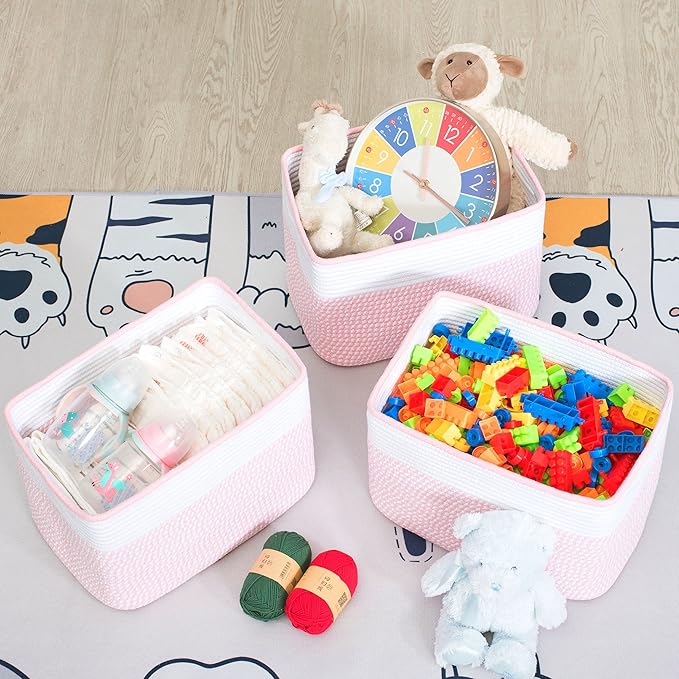 - Handcrafted & No Sharp Edges - Handmade from premium materials, our baskets are soft to the touch, yet sturdy enough to hold its shape. The workmanship ensures there are no sharp or hard edges to scratch furniture. Use them with complete peace of mind in recreation room, playroom, living room, bedroom, nursery room, bathroom, laundry room, mudroom, pantry, arts & crafts room, home office or even garage.