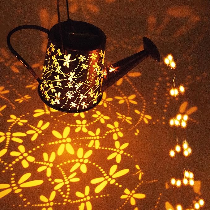 - 【Ideal decorations &gifts】Solar outdoor decor lights are also an ideal gift for housewarming and gardening.Solar watering can lights project beautiful patterns at night,giving you a dreamlike feeling in gardens,patio,lawns,and courtyards.This solar lights is a garden gift for women,parents,grandma,friends,and gardeners.Whether it's birthday,Mother's Day,Father's Day,Christmas,or Thanksgiving,they will all love this unique design.