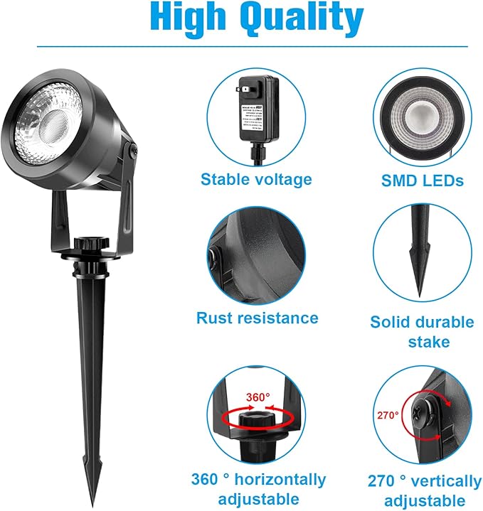 - 【Customize Each Spotlight】Our Christmas spotlights can be individually controlled with one light. You can create different colored Christmas lighting scenes for each Christmas low voltage landscape spotlight. You can also turn off any unnecessary Christmas landscape light at any time. And you can also adjust the brightness of the Christmas spotlight.You can install the Christmas spotlight on the wall or on the ground. And don't worry about which angle is not illuminated. It can be rotated around 360° and adjusted up and down 270°.
