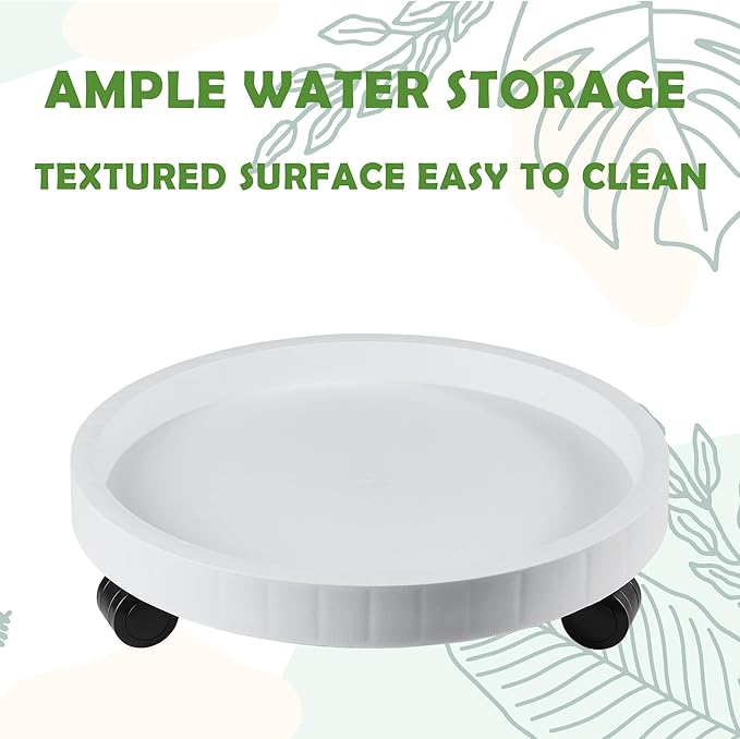 14.2 Inch Planter Caddies Rolling Saucer Caddy with Wheels, Heavy Duty Wheeled Stand for Potted Plant, Round Coaster Roller Base Tray with Casters, Flower Pot Dolly Holder for Indoor Outdoor