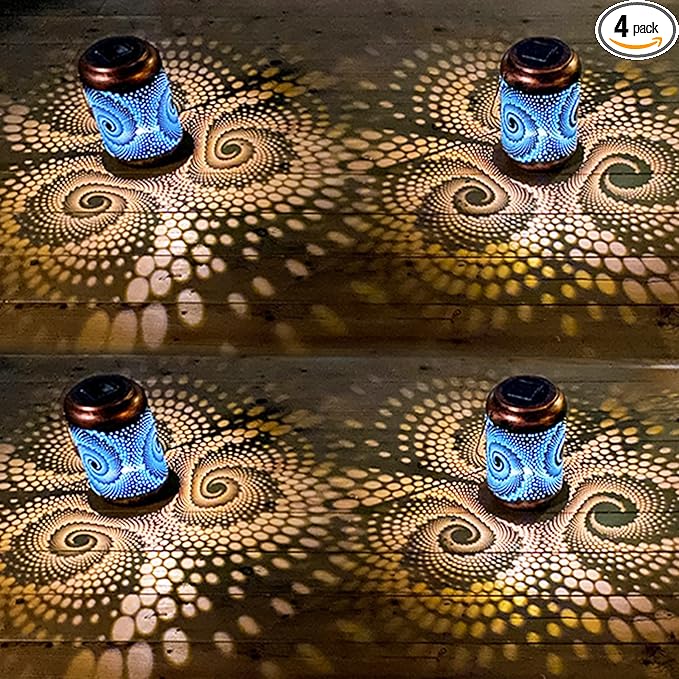 - Gorgeous & Cool Garden Decor: This outdoor lantern has an innovative design that keeps with modern trends. The exterior is pure black with a cool spiral pattern, combined with a cold blue coating inside. In the night, this lantern casting dynamic blue light that is full of technology shadow.