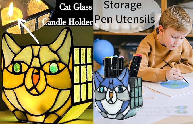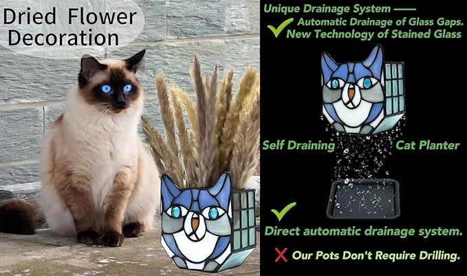 - HOME DECOR:This flowerpot is also perfect for those who enjoy gardening but have limited outdoor space; Bring the beauty of nature indoors with stained glass cat planters and add a touch of whimsy to your home decor