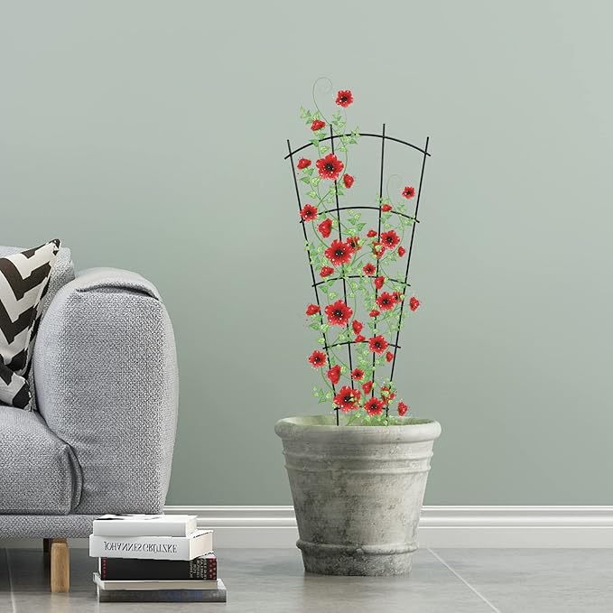 4 Pack 32'' Indoor Plant Trellis for Potted Plants Climbing Outdoor Metal Garden Trellis Houseplants Flowers Vine Ivy,Fan Shape, Black