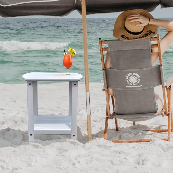 - 【DURABLE MATERIAL】This side tables are made of recycled plastic HDPE material that is more weather resistant than other poly lumber table.HDPE is an eco-friendly solution to wood.Weatherproof, heavy-duty construction withstands a range of environmental stressors,Weatherproof, heavy-duty construction withstands a range of environmental stressors