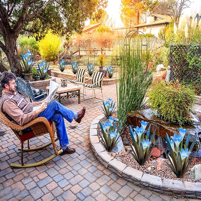 - 【 Easy to install 】 The metal agave is 16 inches tall, with nice lily flowers in the middle, and comes with a ground insert for more firm resting on the ground. Just place it anywhere you want, garden, yard, patio. It can be placed on the ground, on the patio, and used as a planter