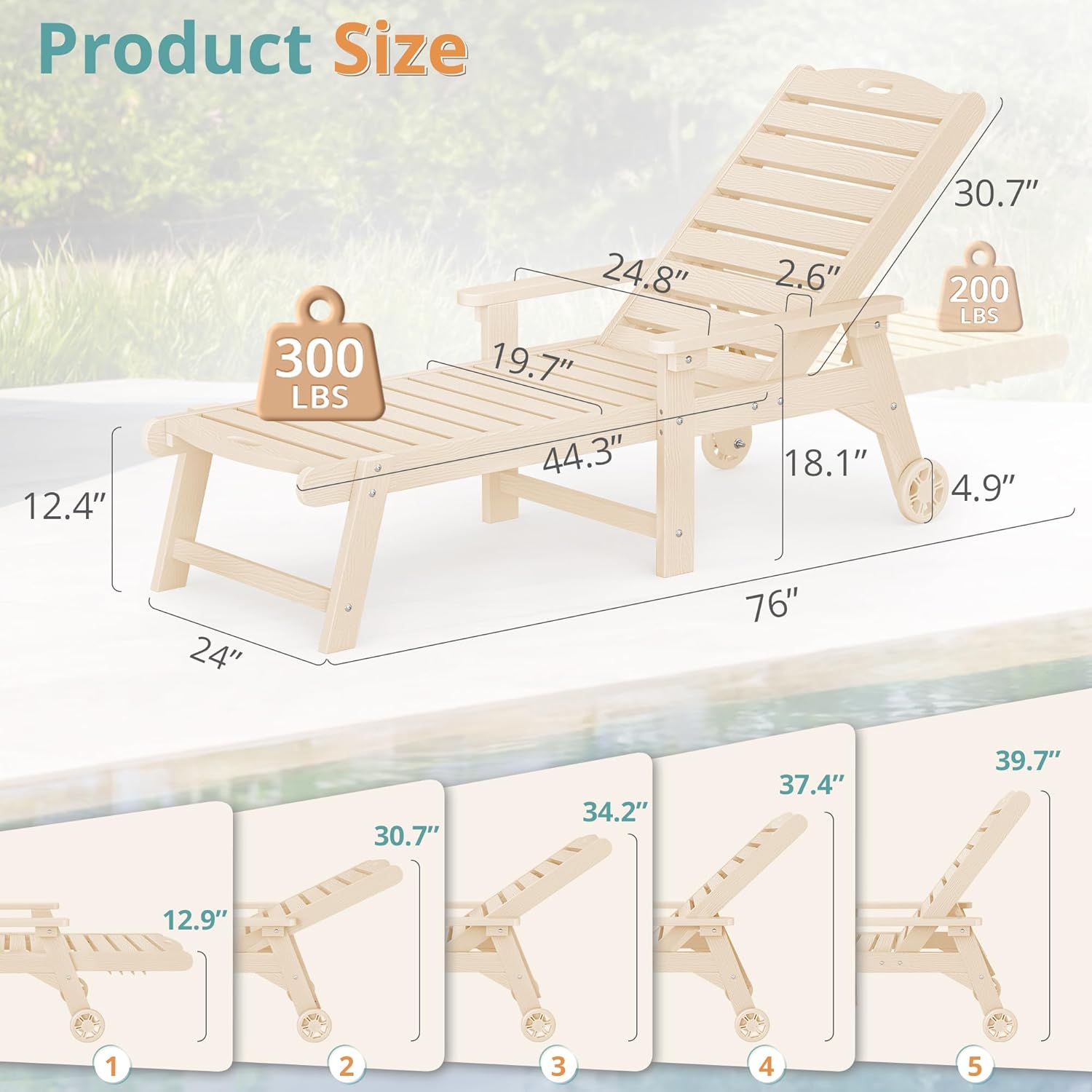 - HDPS Material: The outdoor lounge chairs is built to last with its HDPS lumber material that resists fading, cracking, and peeling, which is very sturdy and can withstand the test of outdoor environments