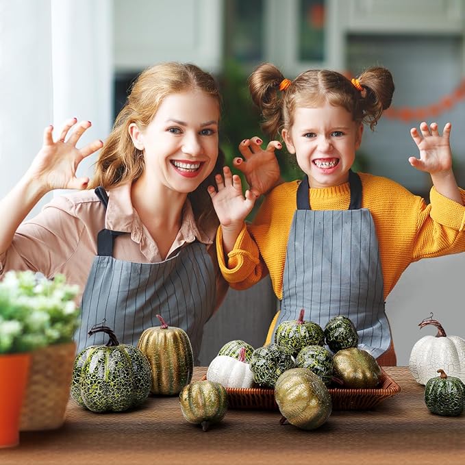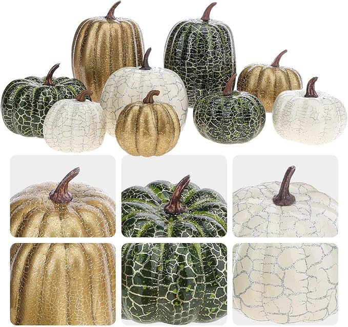 - Freely Matching Decor Style: We have various sizes and colors of artificial pumpkins, including sparkling gold powder pumpkins and rustic pumpkins, which can be freely paired with your favorite style decorations at Halloween and autumn gatherings.