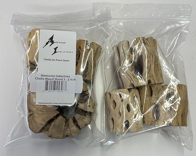 - 3 pieces of 2 inch Natural and Unique cholla wood stands for air plants or any other small item. No two are identical, these pieces are more uniform overall then our other 3 pack Cholla Rounds listing. Please see the pictures.