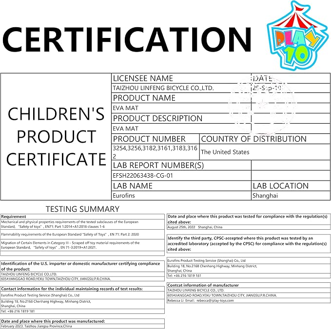 - Non-Toxic EVA Material-This specially foam play mat is 100% free of BPA, lead, phthalates & heavy metals, which is foam formamide free.It is designed with anti-slip and anti-fall features that effectively protect the baby's knees and cushion the impact on their joints, reducing the risk of accidents during the crawling and walking stages.This baby mat for floor provides a safe and comfortable play area for infants and toddlers.