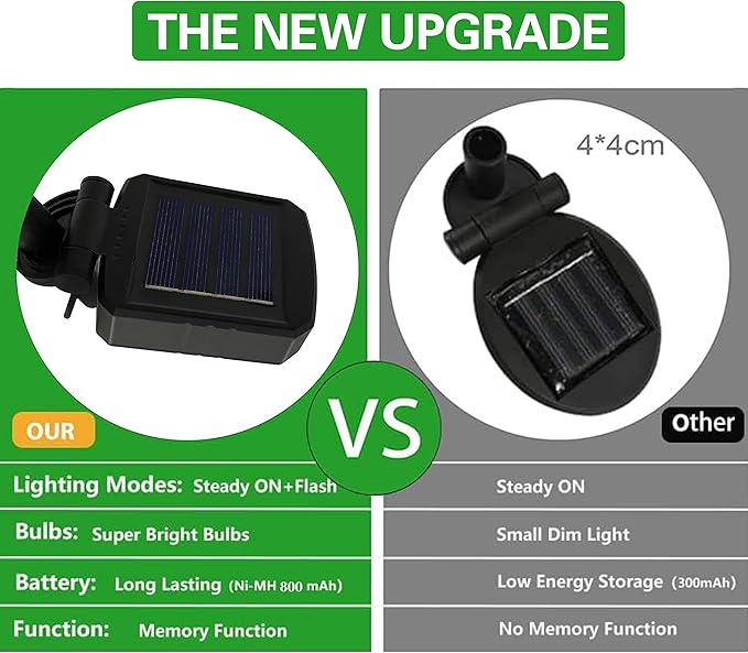- 【2 Lighting Modes Bright Light Beads】: This solar lights outdoor waterproof provides 2 lighting modes, steady mode and flashing mode are selectable. Turn the switch to "2" for "Steady" mode, slide to "1" for "Flash" mode, each pack is equipped with 10 LED bulbs, high light transmittance PVC sphere, to provide you with brighter and softer light and lighting, It is very suitable for creating beautiful pictures of groups of fireflies dancing happily in your garden and courtyard!