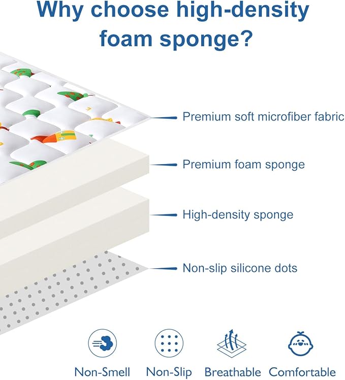 Odorless Premium Foam Baby Play Mat, Soft Microfiber Fabric Crawling Mat for Floor- Comfortable and Hypoallergenic, Non-Slip Cushioned Floor Playpen mat for Infants,Babies,Toddlers