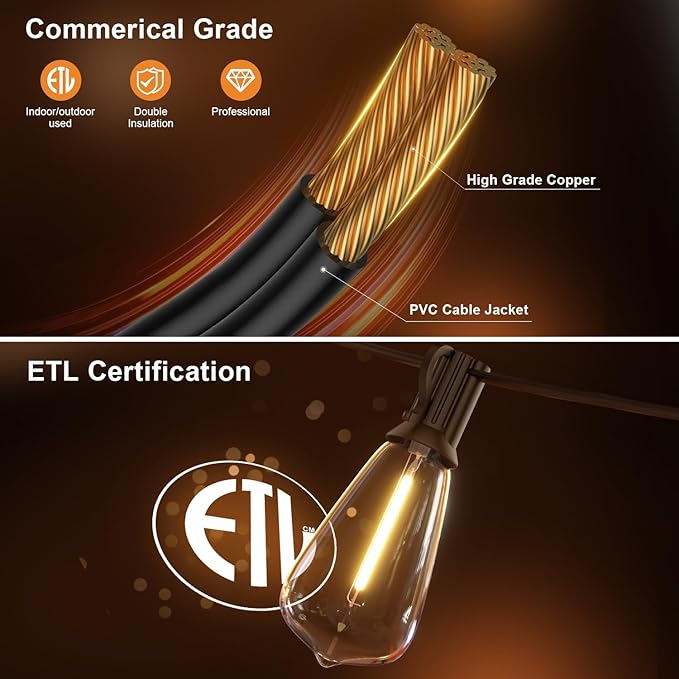 - Energy-Saving 30000 Hours: With increasing emphasis on sustainability, patio lights often use LED technology, which consumes significantly less energy compared to traditional incandescent bulbs. LED string lights are not only eco-friendly but also help reduce electricity costs.