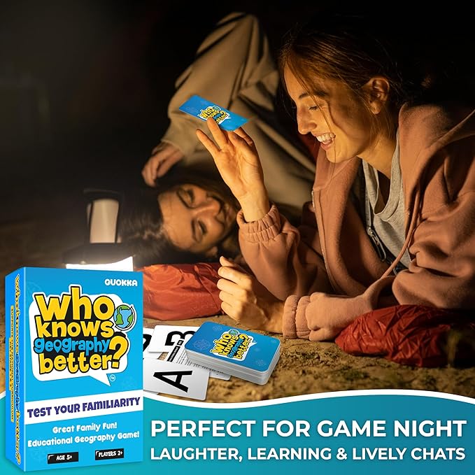 - GEOGRAPHY CARD GAME: competitive learning card game for the family sharpens geography knowledge; Players answer questions about countries, capitals, landmarks, and more, enhancing their geographical expertise while having fun