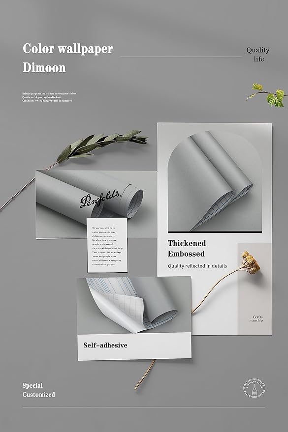 Dimoon 78.7''x17.7'' Grey Peel and Stick Wallpaper Contact Paper Modern Self Adhesive Wall Paper Removable Renter Friendly Textured Solid Color Shelf Cabinet Vinyl Roll (78.7''x17.7'',Grey)