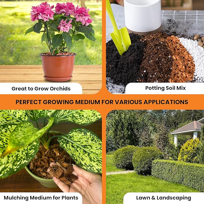 - 🥥Perfect to Use for All Plants: Coconut Husk Chips can be used for orchids, shrubs, flowers, vegetable plants. Great to use in lawns, raised beds