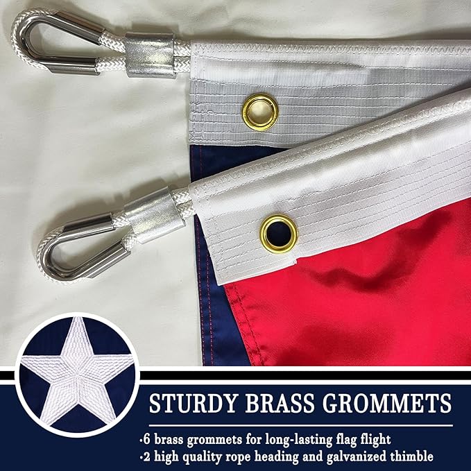 - GREAT WORKMANSHIP: The embroidery stars and sewing are made with precision craftsmanship. The superb double stitching makes the flag more durable and waterproof. This flag can withstand high winds, due to the quadruple stitched hem