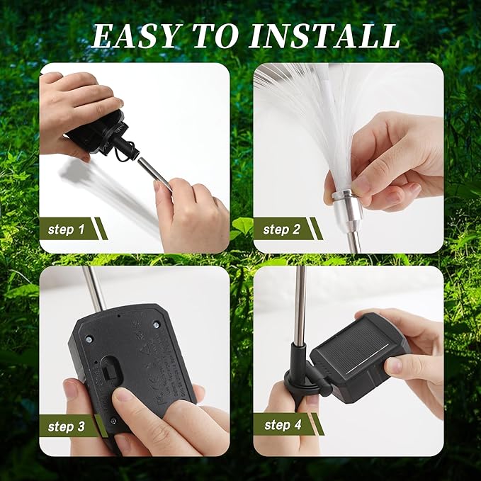 - Easy to Install - Super easy to use as no cables or plugs are required. All you need to do is to plant them in the ground and turn the switch on to enjoy the most beautiful solar decorative lights. Automatically charge during the day and automatically light up at night.