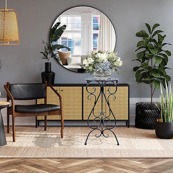 - ❀[More Usage Scenarios]This elegant plant holders has round grid flat top, you can place this plant stand in the outside, inside, clearance, house, living room, balcony, deck or front door and display your large potted, succulent, fern, toys, books, coffee etc.