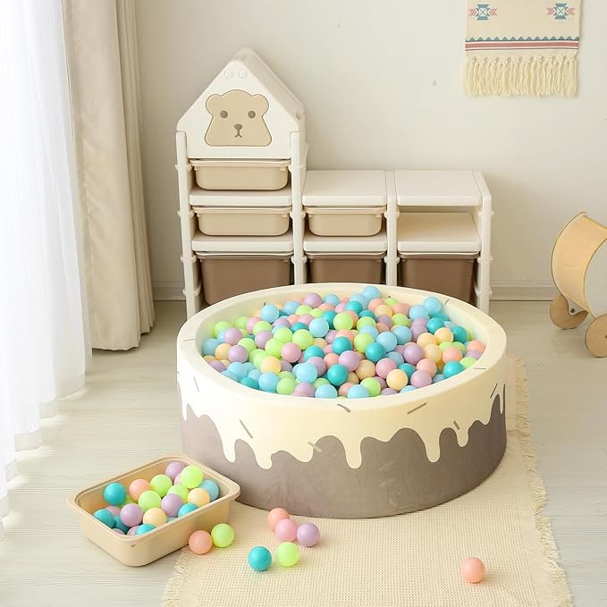 - PACKING - This pack includes 100 ball pit balls for home use, ideal for filling play tents, playpens, kiddie pools, baby playhouses, play yards, ball pits, and bounce houses. They also make a fun photo prop for pets and can be used at parties, backyard gatherings, parks, playgrounds, daycares, schools, and carnivals. Please note: A 40-inch ball pit typically requires approximately 400-800 balls for filling.