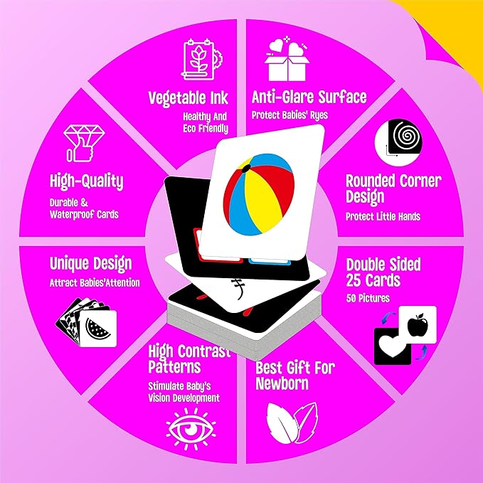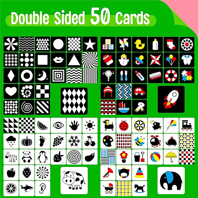 - Perfect For: The brain development is vital for babies’ growth, these high contrast black-white and colorful baby visual stimulus cards play an important role in cognitive development. It is perfect as birthday, holidays gift for newborn and infants.