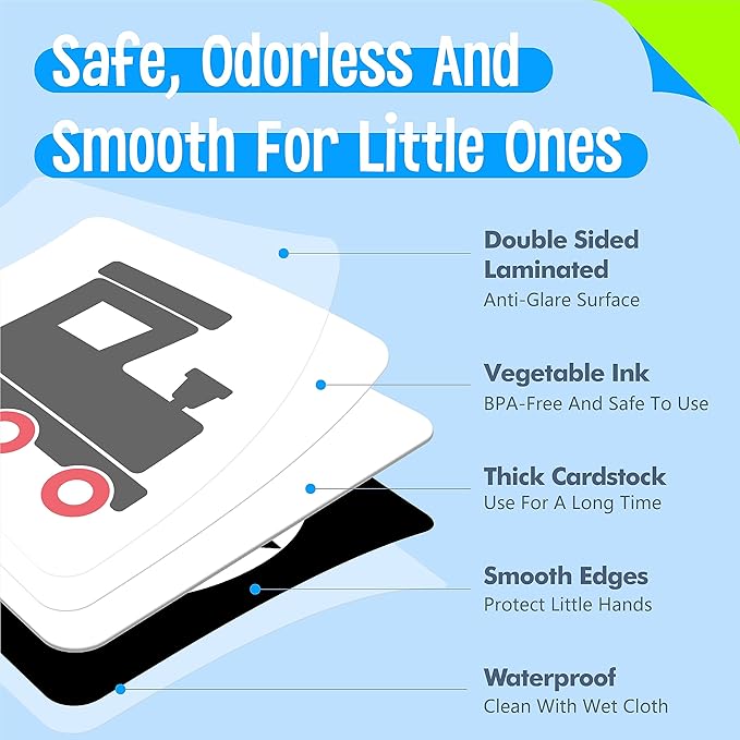 - Premium Quality: Photo-grade card papers coated with premium anti-dazzle film, easy to recognize and protect babies’ eyes well. Printed with premium vegetable oil-based high gloss ink. BPA-free and safe to use.