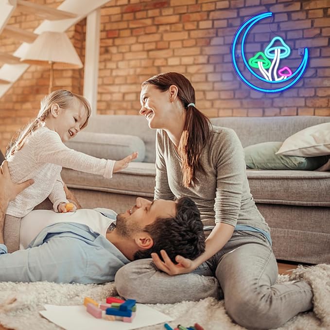 - THEME DECOR:Moon Mushroom Neon lights can decorate your bedroom and your party, adds a different atmosphere to wall decorations, led neon signs are ideal for home décor or party decorations, make the place you want to decorate become more attractive.