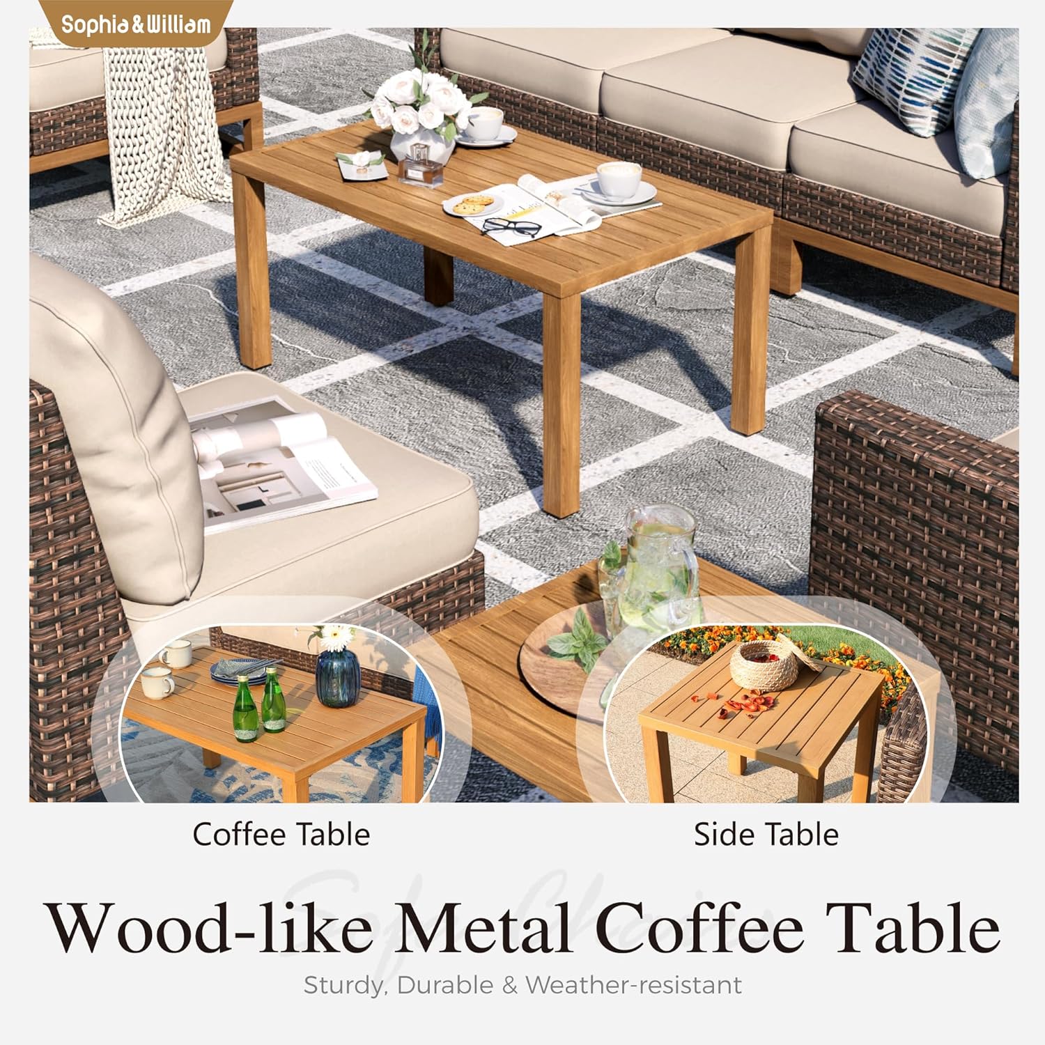 Sophia & William Large Patio Furniture Set, 8 Piece Luxury Rattan Outdoor Sectional Furniture Set, Patio Conversation Set with 3 Armless Sofa, 2 Corner Sofa, 2 Single Sofa, 2 Coffee Table(Beige)