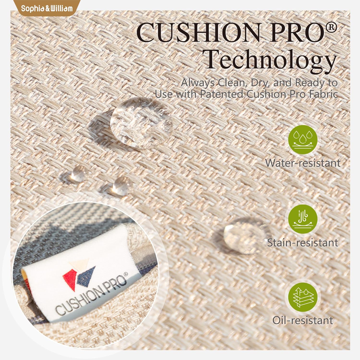 - 5.5" THICK CUSHION & SPECAIL FABRIC: Our outdoor patio furniture features Cushion Pro outdoor fabric that is specially designed for outdoor use which has excellent water-repellent, soil-release, and stain-resistant properties, making it easy to clean with just a sponge and cleaning spray. 5.5" Thick cushions immerse yourself in cloud-like softness for unrivaled comfort & provide the perfect balance of support. Removable cushions are easy to clean.