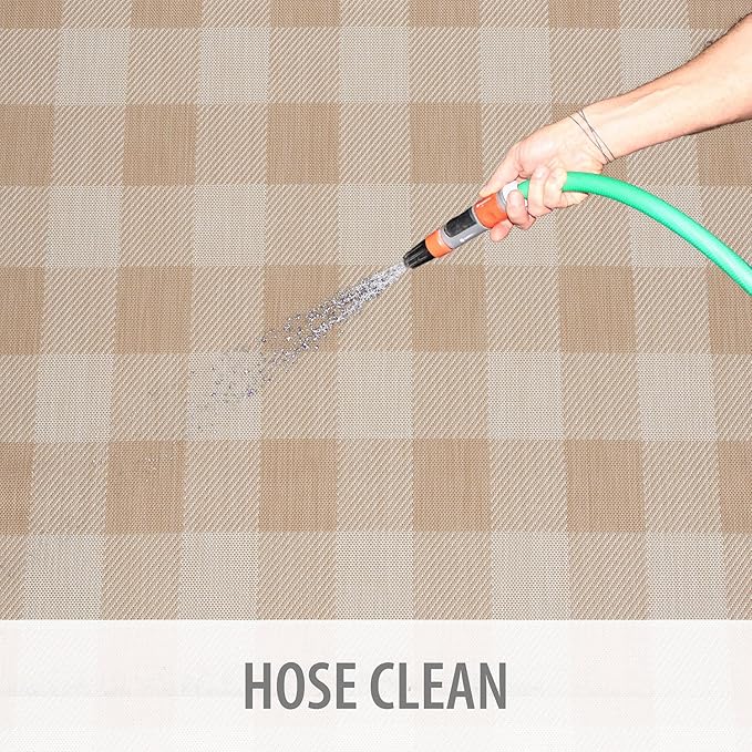 - [ WASHABLE: ] You can vacuum with a vacuum cleaner indoors and you can wash with a hose outdoors. To wash an outdoor rug, spray the surface with a 5-1 mixture of mild dish soap and water and then rise with a hose.