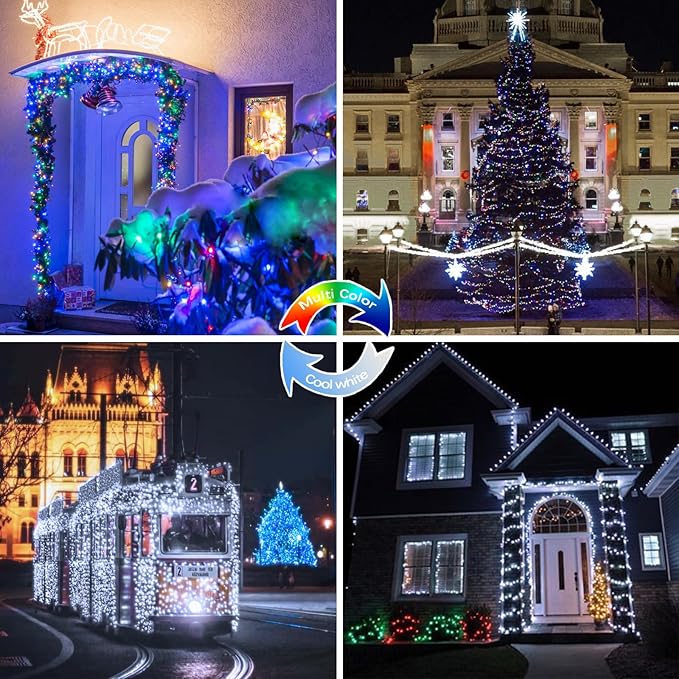 - Upgraded 2 Pack Super Bright Solar Christmas Lights: Cute shaped, powerful 1800mAh Capacity Battery, Super Bright Total 200 LED 80FT, Upgraded Larger LED Beads, IP65 Waterproof Performance. Durable Flexible Copper Wire, Quick Charging Technology, Cool White ⇋ Multicolor Switchable, Romantic Christmas Decorations. Solar string lights outdoor waterproof will be a great choice.