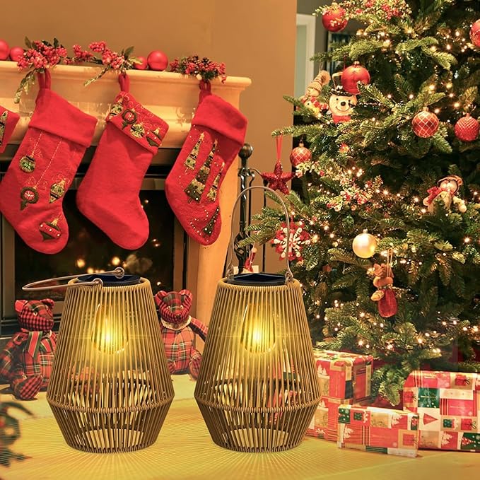 - 𝐃𝐞𝐜𝐨𝐫𝐚𝐭𝐢𝐯𝐞 𝐑𝐚𝐭𝐭𝐚𝐧 𝐋𝐚𝐧𝐭𝐞𝐫𝐧:Solar Lanterns Outdoor are made of rattan, purely handmade. The lights emit warm light and add a sense of ambiance to your yard. MAINLY FOR DECORATION, NOT FOR ILLUMINATION