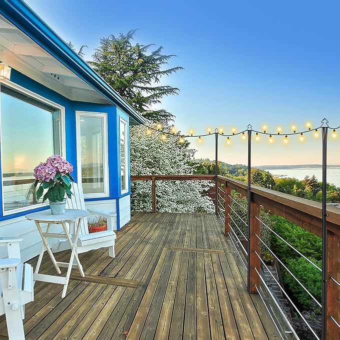 - - Easy to Install: Our string light poles are designed for hassle-free installation, making it easy for you to create a relaxing atmosphere in your outdoor living space without complicated installation procedures.