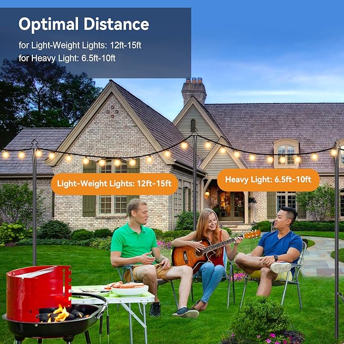- - Durable and Sturdy Poles for Outdoor String Lights: Enjoy long-lasting durability with our sturdy metal string light poles that are built to withstand any weather conditions and provide stability to your lighting setup.