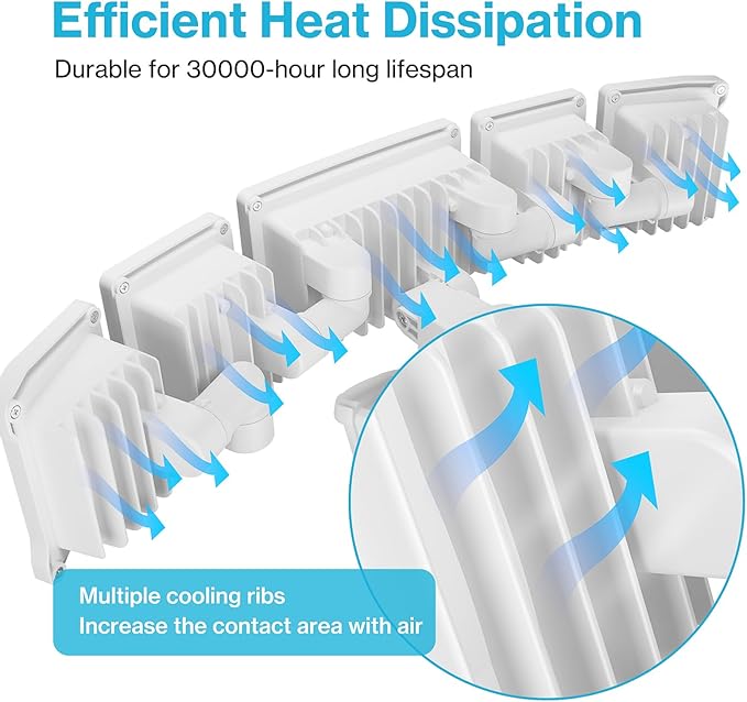 - Light Up Wide Coverage: This 10,000 lm motion lights for outside lights up yards, garages, driveways, and more. Its five-headed adjustable design provides 360-degree coverage, illuminating up to 1977 square feet to enhance home security at night