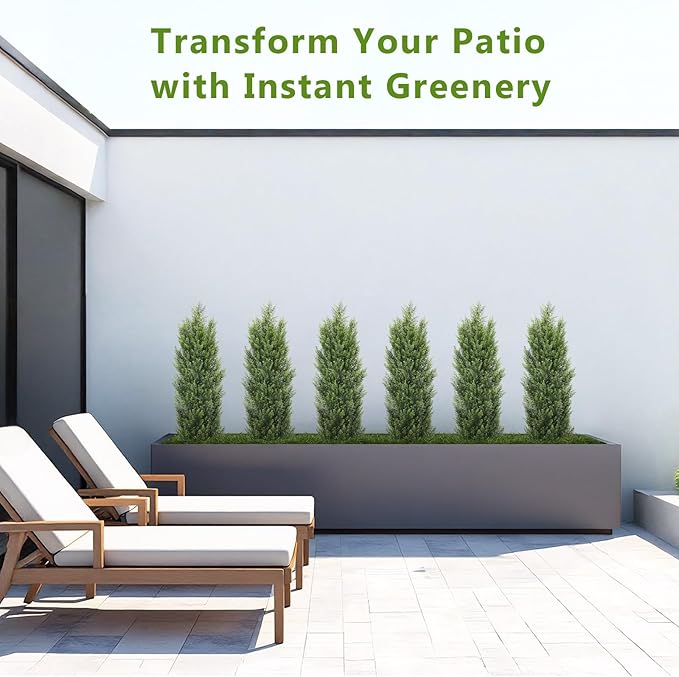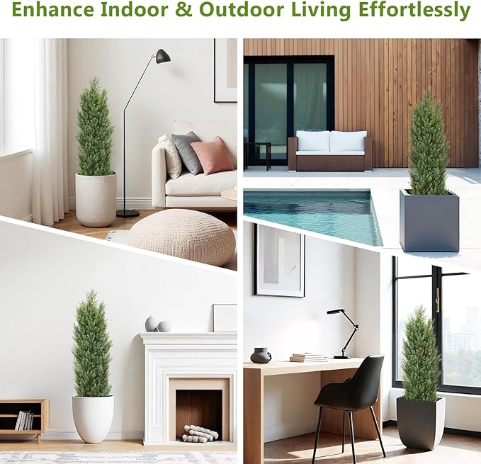 - 【REALISTIC & EVERGREEN LOOK】These cedar topiary trees artificial outdoor feature dense foliage with a natural, sculpted shape that mimics real evergreen bushes. Ideal for outdoor planters, entryways, or patio corners, they offer lifelike greenery that stays vibrant through all seasons. (Note: Branches arrive compressed. Gently shape them by hand for best results.)