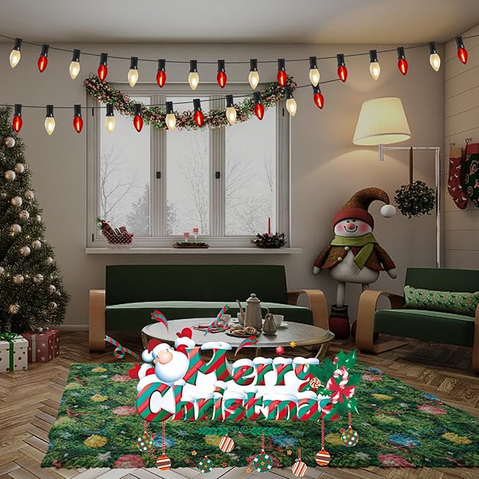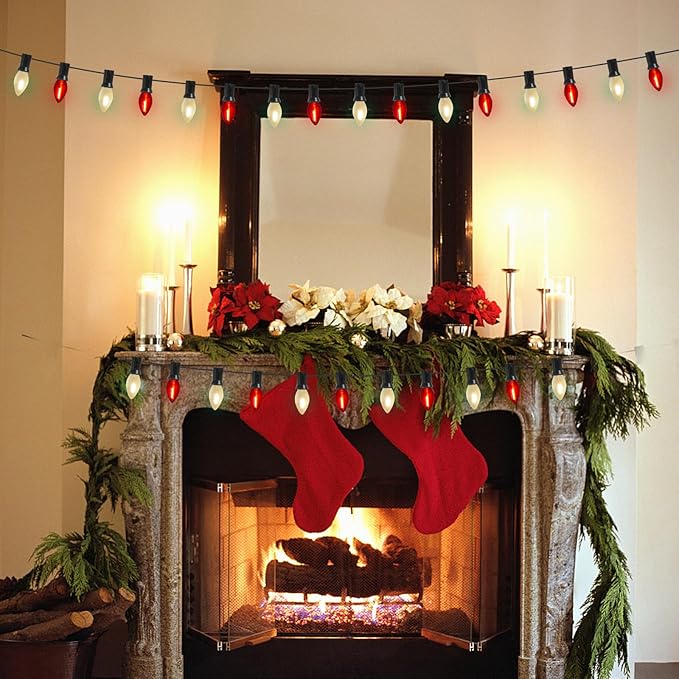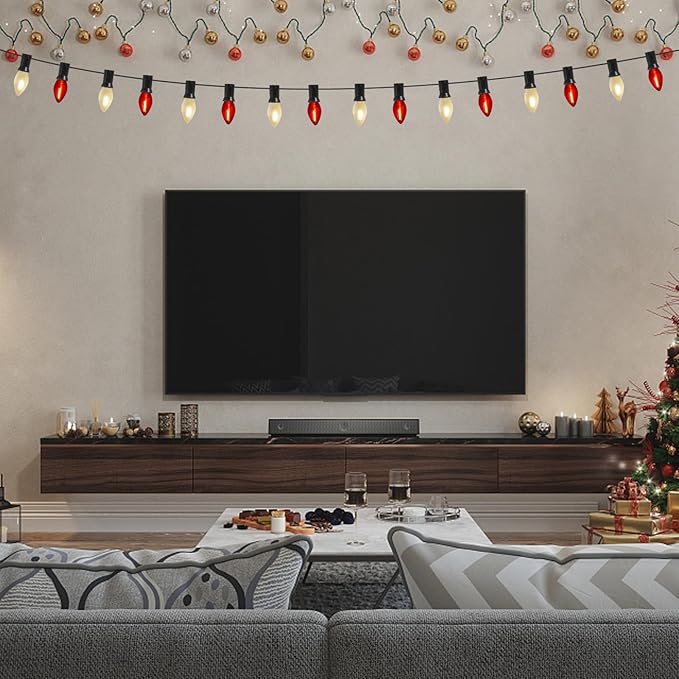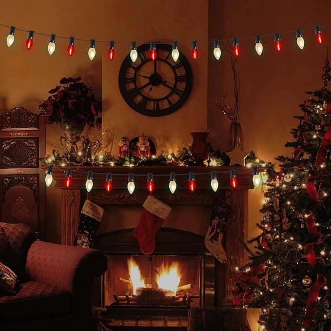- 25FT Led Christmas Lights: C7 Led Christmas lights string outdoor combined with red/frosted white bulbs glow naturally warm, creating a vintage effect or antique atmosphere and romantic atmosphere. C7 led red/White Christmas lights Perfect for wedding, birthday, Valentine's Day decoration and lighting.