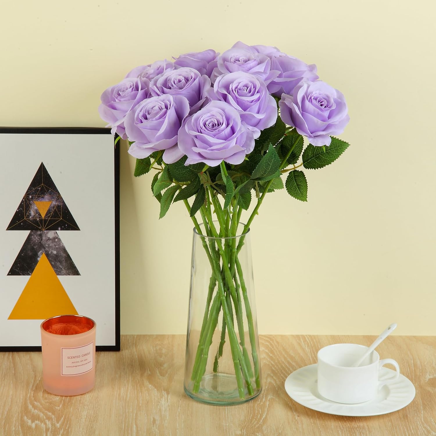 12pcs Light Lavender Roses Artificial Flowers Fake Roses Silk Flowers Roses with Long Stems for Wedding Home Party Centerpieces Decorations